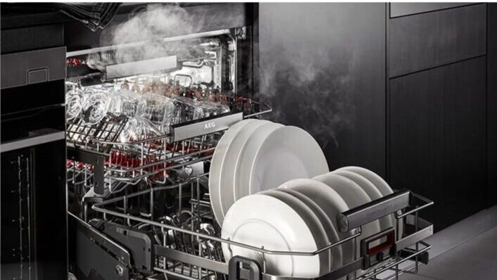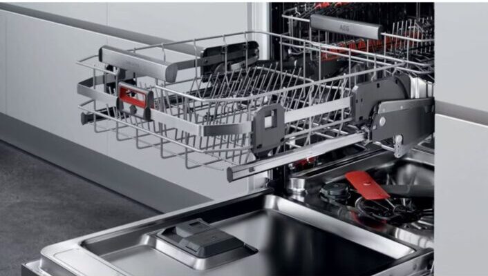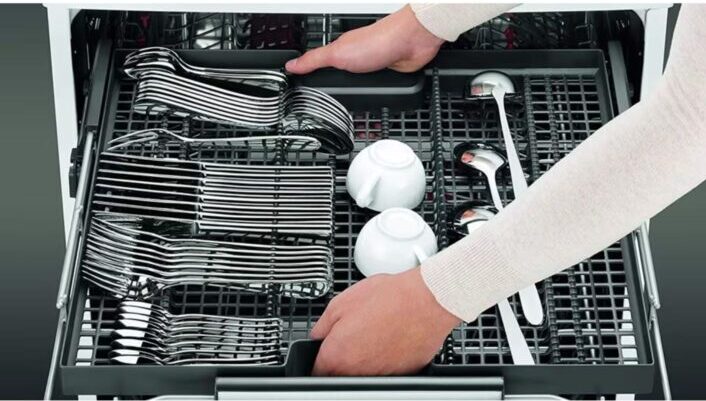 AEG独自のリムーバルトレイ。洗浄後のカトラリー収納はトレイごと収納場所まで持ち込むことができます。