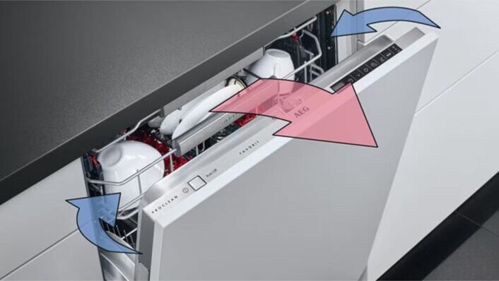 ドアが開くことで冷やされた庫内と温かい食器の温度差が余熱乾燥の効果を高めます。