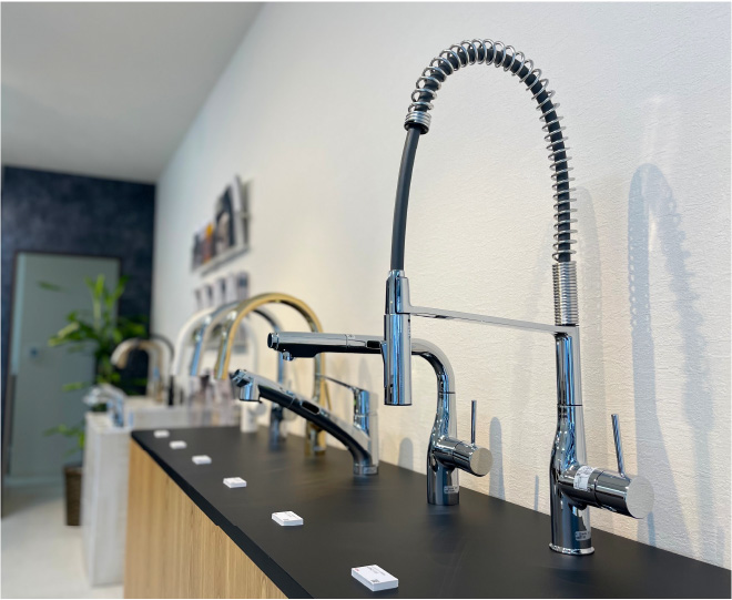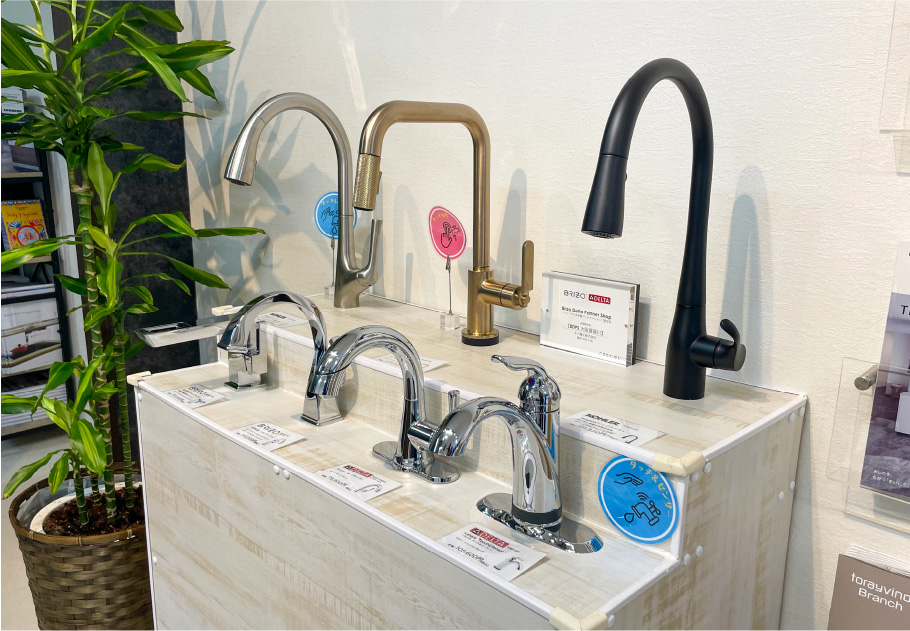 GROHEやDELTA、BRIZO、KOHLERといった海外ブランドの水栓金具を豊富に展示しております。